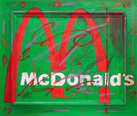 Lot 6 Enrico Manera, McDonald's, 2005, cm 55x65, Tecnica mista su tela con cornice invasa, Titolo al verso