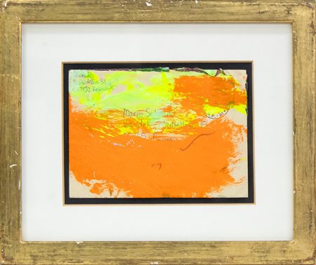 Lot 10 Mario Schifano, Preg.mo artista Mario Schifano, 1997, cm 12x16.8, Smalto su carta, Archiviazione e Provenienza Monte Titano Arte, Firma al recto, Copia archiviazione al verso, Cornice in omaggio