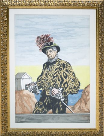 Lot 13 Giorgio de Chirico, Autoritratto, 1972, cm 100x70, Litografia a 16 colori, Esemplare 38 di 99, Certificato di autenticità a cura dello stampatore Alberto Caprini, Pubblicazione su Catalogo dell'Opera Grafica 1969/1977 Ed. Bora - copertina e pag. 183, Firma al recto, Cornice in omaggio