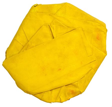 Lot 14 Cesare Berlingeri, Piegare il giallo, 2000, cm 80x90x11, Tecnica mista su tela piegata, Archiviazione a cura della Galleria d'Arte Dante Vecchiato, Firma - Titolo - Anno al verso