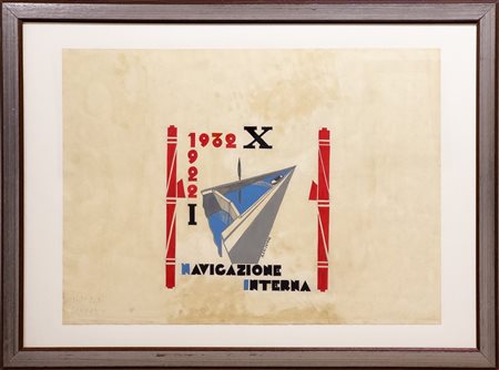 Lot 15 Attilio Calzavara, Tavola n.36, 1922/1932, cm 24.7x24.7, Inchiostro su carta, Pubblicazione sul Catalogo 'Tra Futurismo e Visual Design, Attilio Calzavara e il progetto grafico di opere pubbliche 1922/1932 e sulla rivista d'arte FMR BIANCA a pag. 116, Firma al recto, Cornice in omaggio