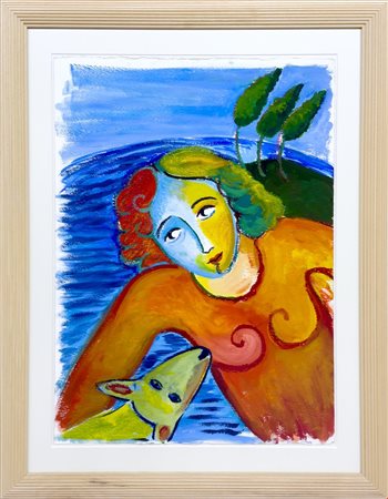 Lot 18 Sandro Chia, Amanti, 2008, cm 24x19.5, Tecnica mista su carta, Autentica a cura dell'artista, Esposizione presso Museum of Art - DeLand - Florida nel 2013, Firma al recto, Etichetta Archivio Chia al verso, Cornice in omaggio