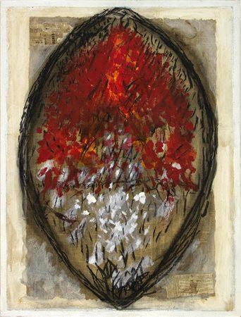 Lot 21 Arturo Carmassi, Origine, 1978, cm 130x97, Tecnica mista su tela, Certificato autenticità con al verso firma dell'artista, Titolo - Firma - Anno al verso, Cornice in omaggio