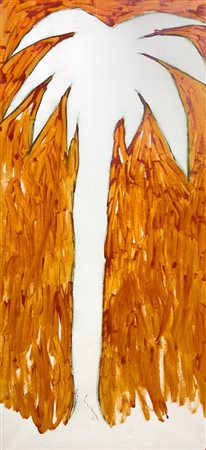 Lot 23 Mario Schifano, Senza Titolo - (Palma), 1980/1981, cm 206x97, Smalto su tela, Archiviazione presso Fondazione M. S. Multistudio, Firma al verso