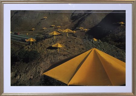 Lot 8 Christo, The Umbrellas - California, 1991, Cromolitografia, 64x95 cm, 300 esemplari non numerati, Timbro Galleria Il Castello di Adria al verso, Firma e Didascalia al recto, Cornice in omaggio