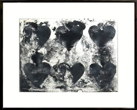 Lot 9 Jime Dine, One Plate, Da: Dutch Hearts, 1970, Litografia a colori e collage su carta 'hodgkinson' fatta a mano, 42x51 cm, Esemplare 32 di 85, Cornice in omaggio con doppio vetro