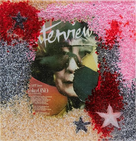 Lot 6 Omar Ronda, Yoko Frozen Interview Warhol, 2015, Tecnica mista su vetro, 30x30 cm, Autentica a cura dell'artista, Firma Titolo e Datazione al verso