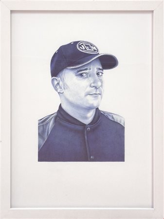 Lot 8 Giuseppe Stampone, Santiago Sierra, 2014, Penna BIC su carta, 59.4x44.5 cm, Serie di 100 disegni: istallazione preso il museo GAMeC di Bergamo, Cornice in omaggio