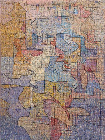 Lot 13 Vincenzo Balsamo, Composizione, 1989, Olio su tela, 100x70 cm, Firma al verso, Timbro Archivio al verso