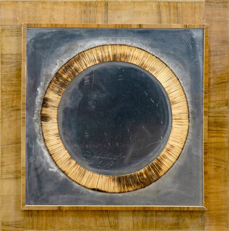 Lot 16 Bernard Aubertin, Dessin de Feu Circulaire, 2009, Fiammiferi bruciati su alluminio, 50x50 cm, Esemplare Unico, Archiviazione presso Archivio opere Bernard Aubertin, Firma e Datazione al verso, Cornice in omaggio