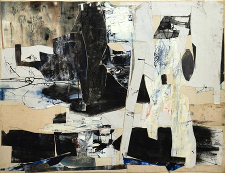 Lot 23 George Greene, Senza Titolo, anni Sessanta, Tecnica mista su tela, 85x110 cm, Esposizione presso Galleria del Naviglio - Milano nel 1963, Dicitura proprietà Cardazzo (Galleria del Naviglio), Cornice in omaggio
