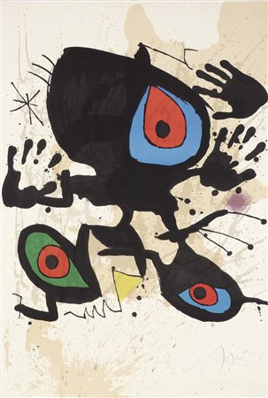 Lot 4 Joan Miró Barcellona 1893 - Palma di Maiorca 1983 Manifesto per l’esposizione Homage to Miró, 1973 Litografia a colori, es. 137/150, cm. 90,3x60,8 (carta) Firma a matita sul margine in basso a destra: Miró, tiratura in basso a sinistra: 137/150. Manifesto per l’esposizione Homage to Miró, New York, Museum of Modern Art, 10 ottobre - 10 dicembre 1973. Tiratura avant la lettre di 150 esemplari firmati e numerati. Editore The Museum of Modern Art, New York, stampatore Arte Adrien Maeght, Parigi. Bibliografia: Patrick Cramer, Joan Miró Litografo, V. 1972-1975, Maeght Éditeur, Paris, 1992, p. 31, n. 895.