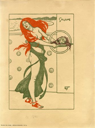1) Bell A. R., Herodias. 1896. Litografia su carta vergellata. mm 220x150. Foglio: mm 280x205. Titolata in lastra in alto a sinistra, siglata in lastra in basso a destra. Timbro a secco "The Studio" in basso a destra. 2) Volz W., Salome. 1896. Litografia estratta da Pan. Titolata in lastra in alto a destra. Foglio con ampia filigrana. (2) OPERA 1: Macchioline ai margini. Inciso in buona conservazione. OPERA 2: Foglio brunito, altrimenti ottima conservazione. -
