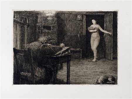 Acquaforte e bulino. mm 414x288. Foglio: mm 500x350. bellini-alberti, 61. Firmata a penna e inchiostro di china in basso a destra. (1) Un lieve ingiallimento da esposizione e qualche macchiolina al verso. -