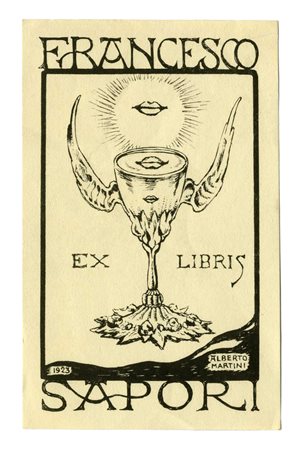 Tecniche e misure varie. Un ex libris è di Alberto Martini, del 1923. (32) Alcuni ex libris sono applicati a supporto, tracce d'uso. -