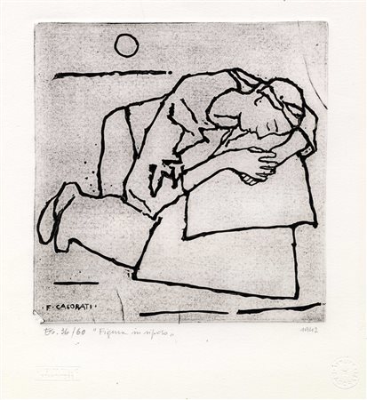 Acquaforte. mm 210x205. Foglio: mm 392x343. Firma in lastra in basso a sinistra. Tiratura, titolo e data a matita in basso ai lati. Sotto alla tiratura, timbro a secco de Luigi De Tullio Stampatore e quello de Atelier Casorati in basso a destra. Es. 36/60. (1) -