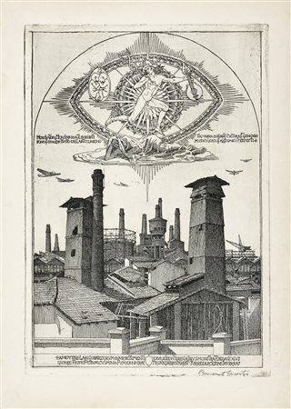 Xilografia. mm 390x345. Foglio: mm 690x490. Velina protettiva con dati editoriali. Incisione facente parte delle edizioni di Cesare Ratta. (1) Margini con piccoli strappetti e foglio lievemente brunito. Qualche piccola macchia nell'inciso. -