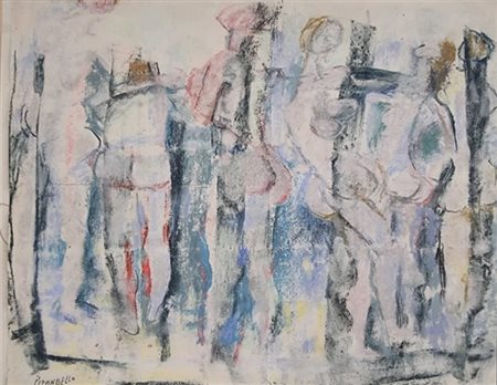 Lot 4 Fausto Pirandello, Pastelli su carta, 23x29 cm, Bagnanti, 1960; Firma in basso a sinistra