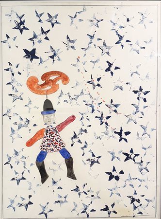 Lot 10 Aldo Mondino, Tecnica mista su cartoncini sovrapposti, 48x68 cm, Senza titolo, 1998; Autentica dell'artista su foto