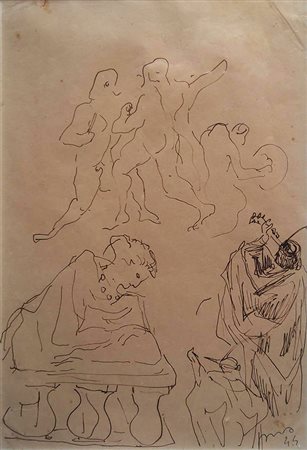 Lot 14 Lucio Fontana, China su carta, 30,6x21,5 cm, Studi, 1944; Autentica dell'Archivio Lucio Fontana, con il n. 2727/4; Firmato e datato "Fontana 44" in basso a destra
