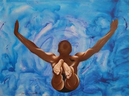 Lot 3 MARINA NOVELLI Roma 1950 IL TUFFATORE 2007 Olio e acrilico su tela 60x104 Certificato di autenticità