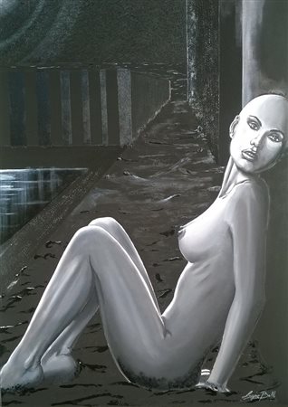 Lot 6 LUCIEN BELLO Mortara (PV) 1962 LO SCURO PENSIERO DI SARA 2014 Tecnica mista su tela 70x50 Certificato di autenticità
