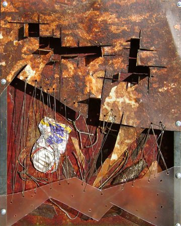 Lot 8 FULVIO BIANCATELLI Roma 1967 SENZA TITOLO N.D. Scultura con neon e applicazioni su ferro 50x40x7 Certificato di autenticità