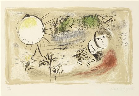 Lot 10 Marc Chagall, Vitebsk 1887 - Saint Paul de Vence 1985, Le repos, 1968, Litografia a colori, es. 21/50, cm. 27,5x46,5 (lastra), cm. 46,1x64,5 (carta), Firma a matita sul margine in basso a destra: Marc Chagall, tiratura in basso a sinistra: 21/50., Tiratura di 50 esemplari numerati e firmati, alcune prove d'artista., Bibliografia: Charles Sorlier, Fernand Mourlot, Chagall lithographe III, 1962-1968, André Sauret Éditeur p. 170, n. 555;, Marc Chagall. The Lithographs. La collection Sorlier, catalogo della mostra, Stuttgart, Staatsgalerie, 19 settembre 1998 - 10 gennaio 1999, poi Hamburg, Deichtorhallen, 18 febbraio - 9 maggio 1999, Verlag Gerd Hatje, 1998, pp. 260, 265, n. 555.,