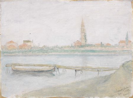 Lot 502 Pio Semeghini, Quistello (Mn) 1878 - Venezia 1964, Veduta di laguna, Burano, 1942, Olio su tavola, cm. 37,5x50, Firma, data e luogo in basso a destra: Semeghini / sett. 1942 / Burano. Al verso: timbro Vittorio E. Barbaroux / Opere d'Arte / Milano. Storia, Collezione Guido Falck, Milano