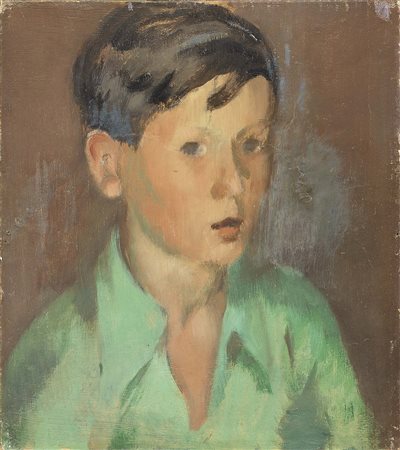 Lot 503 Gigi Chessa, Torino 1898 - 1935, Ritratto di bambino, Olio su tavola, cm. 34,5x30,5, Scritta al verso: Acquistato dalla Sig.ra Chessa / nel 1937. Storia, Collezione Guido Falck, Milano
