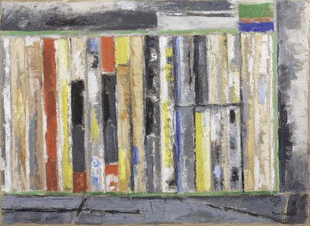 Lot 507 Orfeo Tamburi, Jesi (An) 1910 - Parigi 1994, Botteghe e saracinesche, Olio su tela, cm. 52x71, Firma in basso a destra: Tamburi. Al verso sulla tela: etichetta Galleria Nuovo Sagittario, Milano, con n. 2806. Storia, Collezione Guido Falck, Milano