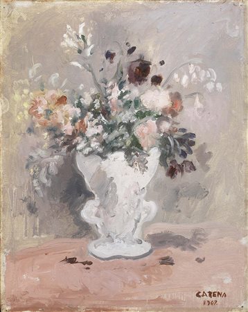 Lot 510 Felice Carena, Cumiana (To) 1879 - Venezia 1966, Fiori, 1947, Olio su cartone telato, cm. 50x40 Firma e data in basso a destra: Carena / 1947. Storia, Collezione Guido Falck, Milano