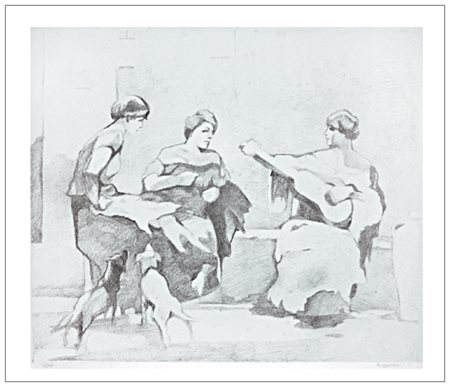 Lot 3 RENATO NATALI Livorno 1883 – Livorno 1979 Senza titolo Litografia es.17/100. Firma in b. a d. (56,5 x 76 foglio – 47 x 56 lito.) B.A.: 50