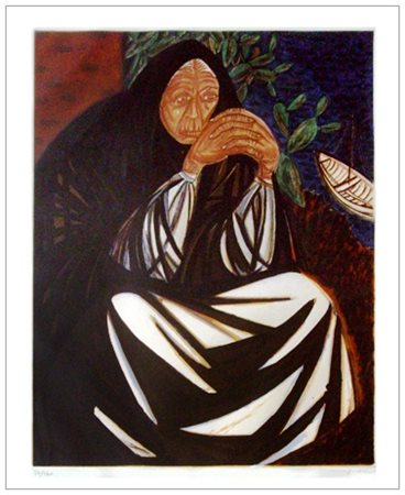 Lot 7 GIUSEPPE MIGNECO Messina 1908 – Milano 1997 L’attesa Serigrafia a colori es.78/150. Firma in b. a d. (80 x 60 foglio – 52,5 x 40 ser.) B.A.: 130