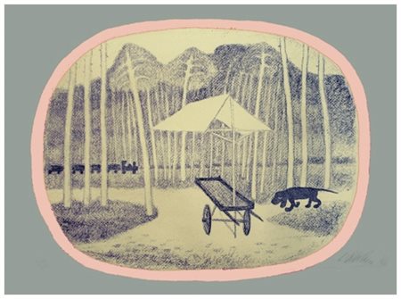 Lot 9 PIPPO ORIANI Torino 1909 – Roma 1972 Senza titolo Litografia a colori es.unico. Firma del fratello Gabriele Oriani in b. a d. (60 x 80 foglio – 50 x 60 lito.) L’opera riprende un dipinto dell’artista di proprietà privata. B.A.: 100