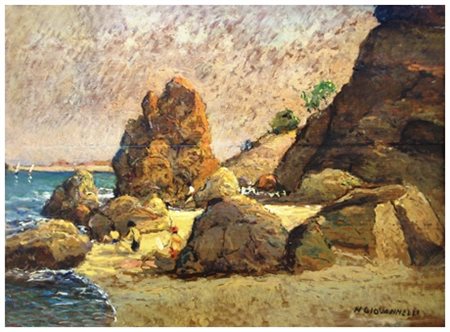 Lot 22 NELLO GIOVANNELLI Livorno 1922 – Livorno 1996 Senza titolo Olio su tavola 31,5 x 42,5. Firma in b. a d.; sul verso firma e località. B.A.: 80