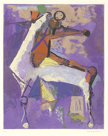 Lot 24 Marino Marini, Pistoia 1901 - Viareggio (Lu) 1980, Miracolo, 1970, Litografia, cm. 31,1x24,2 (carta), Tiratura di 3000 esemplari realizzati per la rivista XXe Siècle n. 35; editore Societé International d'Art XXe Siècle, Parigi., Bibliografia: Guido Guastalla, Giorgio Guastalla, Marino Marini. Catalogo ragionato dell'Opera grafica (Incisioni e Litografie) 1919-1980, Edizioni Graphis Arte, Livorno, 1990, p. 253, n. LT.,