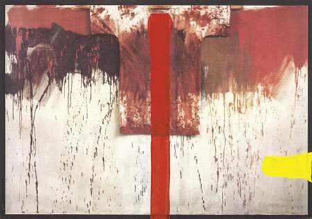 Lot 6 Hermann Nitsch, Vienna 1938, Übermalte Bild-Lithographien, 1991, Cartella di dieci litografie ritoccate a mano dall'artista, es. 47/150, misure varie, tutte applicate su un cartoncino di cm. 70x100,5, Tutte con tiratura e firma in basso: 47/150 Nitsch., Tiratura di 150 esemplari in numeri arabi, trenta esemplari in numeri romani, 20 prove d'artista numerate da a.p. 1 ad a.p. 20 e 10 esemplari Hors Commerce numerati da H.C 1 ad H.C.10, tutti firmati., Stampatore Cartiere Fedrigoni, editore Domus Jani, Illasi. In custodia di legno originale.,