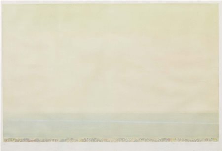 Lot 7 Piero Guccione, Scicli (Rg) 1935, Marina, Acquaforte e acquatinta a colori, es. 99/99, cm. 98x153,5 (lastra), cm. 115x172 (carta), Firma a matita sul margine in basso a destra: Guccione, tiratura in basso a sinistra: 99/99: in basso: timbro a secco Il Cigno Stamperia d'Arte: timbro a secco Il Cigno Galileo Galilei, Edizioni di Arte e Scienza: timbro a secco Ministero dei Beni Culturali 1492-1992, Comitato Celebrazioni Colomnbiane Arte Contemporanea$500$Colombo 92. Al verso, su un cartone di supporto: etichetta e timbro Galleria d'Arte Roggia Grande, Trento.,