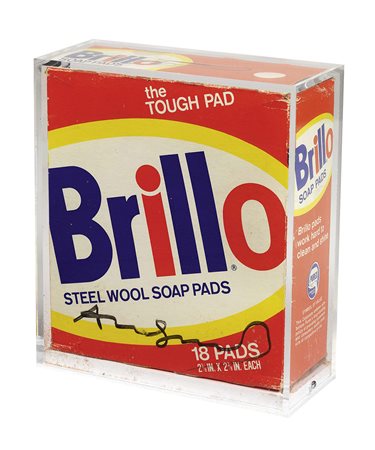 Lot 13 Andy Warhol, Pittsburgh 1928 - New York 1987, Brillo Box, Scatola di cartone, cm. 22 h., Firma su due lati: Andy Warhol., Perizia calligrafica di Frank Garo, Coopersburg, 29 giugno 2015, con n. FPGOL26834.,
