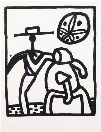 Lot 14 Keith Haring, Kutztown 1958 - New York 1990, Senza titolo, 1989, Silkscreen su carta, es. 24/99, cm. 77x56, In basso a destra: timbro a secco NAP; al verso: timbro The Keith Haring Estate, con dati dell'opera e tiratura.,