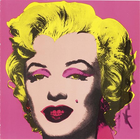 Lot 16 Andy Warhol, Pittsburgh 1928 - New York 1987, Marilyn, Biglietto d'invito, cm. 17,4x17,6, Firma sul lato destro: Andy Warhol., Biglietto realizzato in occasione della mostra Andy Warhol. A Print Retrospective 1963-1981, New York, Castelli Graphics, 21 novembre - 22 dicembre 1981.,