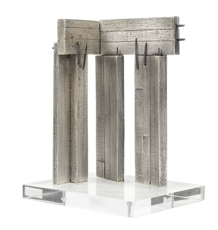 Lot 17 Giuseppe Uncini, Fabriano (An) 1929 - Trevi (Pg) 2008, Epistylium, 2004, Scultura in bronzo patinato con base in metacrilato, es. II/10, cm. 25 h. (con base), Firma, data e tiratura su un lato: Uncini 04 II/10., Certificato su foto Poleschi Arte, Lucca., Multiplo realizzato per il Premio Sisal, II sogno, 2004. Tiratura di 12 esemplari in numeri arabi, 10 esemplari in numeri romani, 3 prove d'artista numerate., Bibliografia: Bruno Corà, Giuseppe Uncini catalogo ragionato, Silvana Editoriale, Milano, 2007, p. 385, n. 04-018-S.,