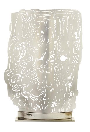 Lot 4 Fausto Melotti, Rovereto (Tn) 1901 - Milano 1986, Scultura A (I pendoli), 1968 (1971 ca.), Scultura in acciaio inossidabile, multiplo, es. 386/500, cm. 40x15x8, Firma punzonata sulla base: Melotti, tiratura su un lato: 386/500., Foto autenticata dall'artista., Bibliografia: Germano Celant, Melotti. Catalogo generale tomo primo, sculture 1929-1972, Electa, Milano, 1994, p. 213, n. 1968 30 (con misure cm. 50x15x8).