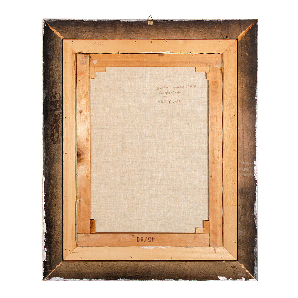 Firmato e titolato al verso: Questo quadro è mio. Battaglia. Tre figure