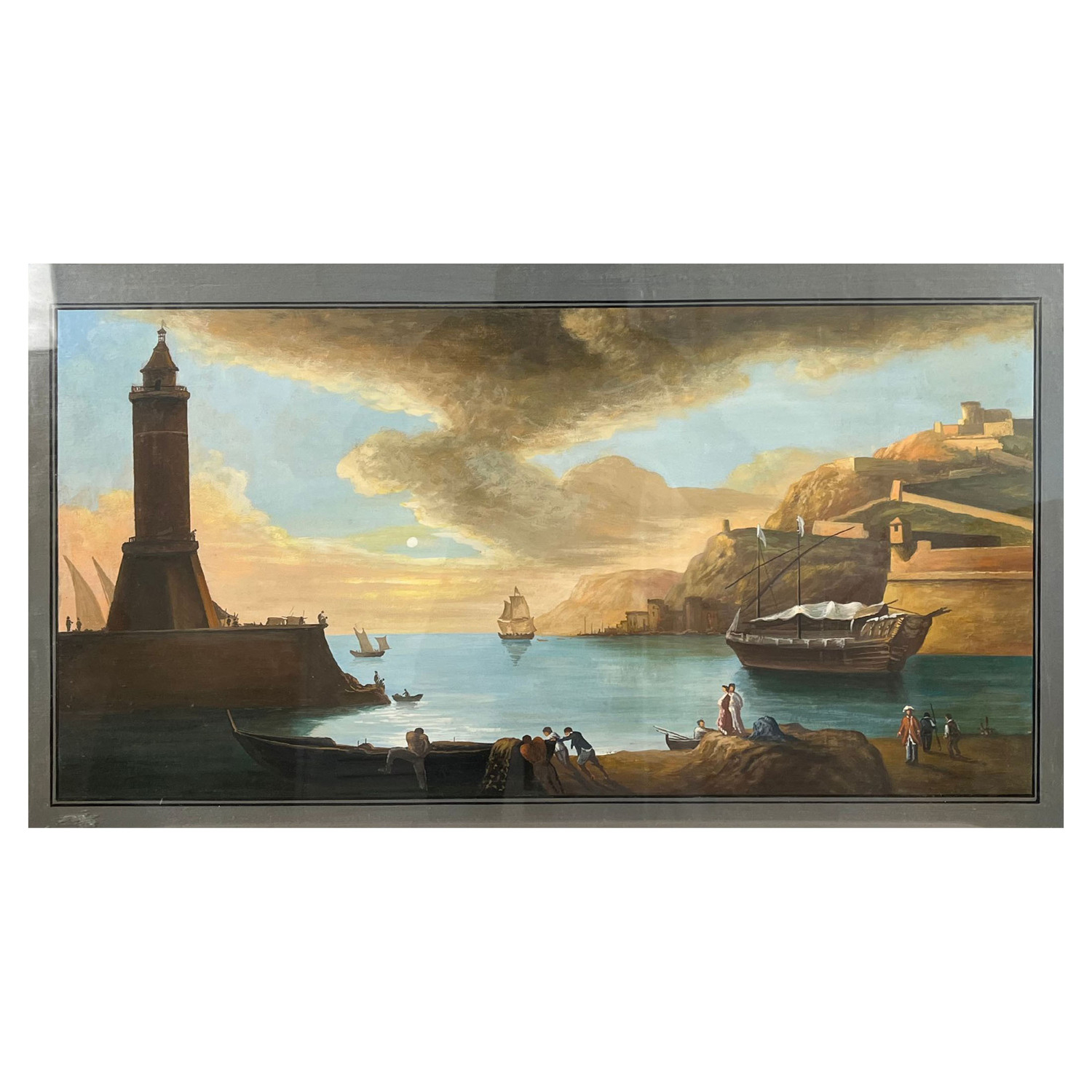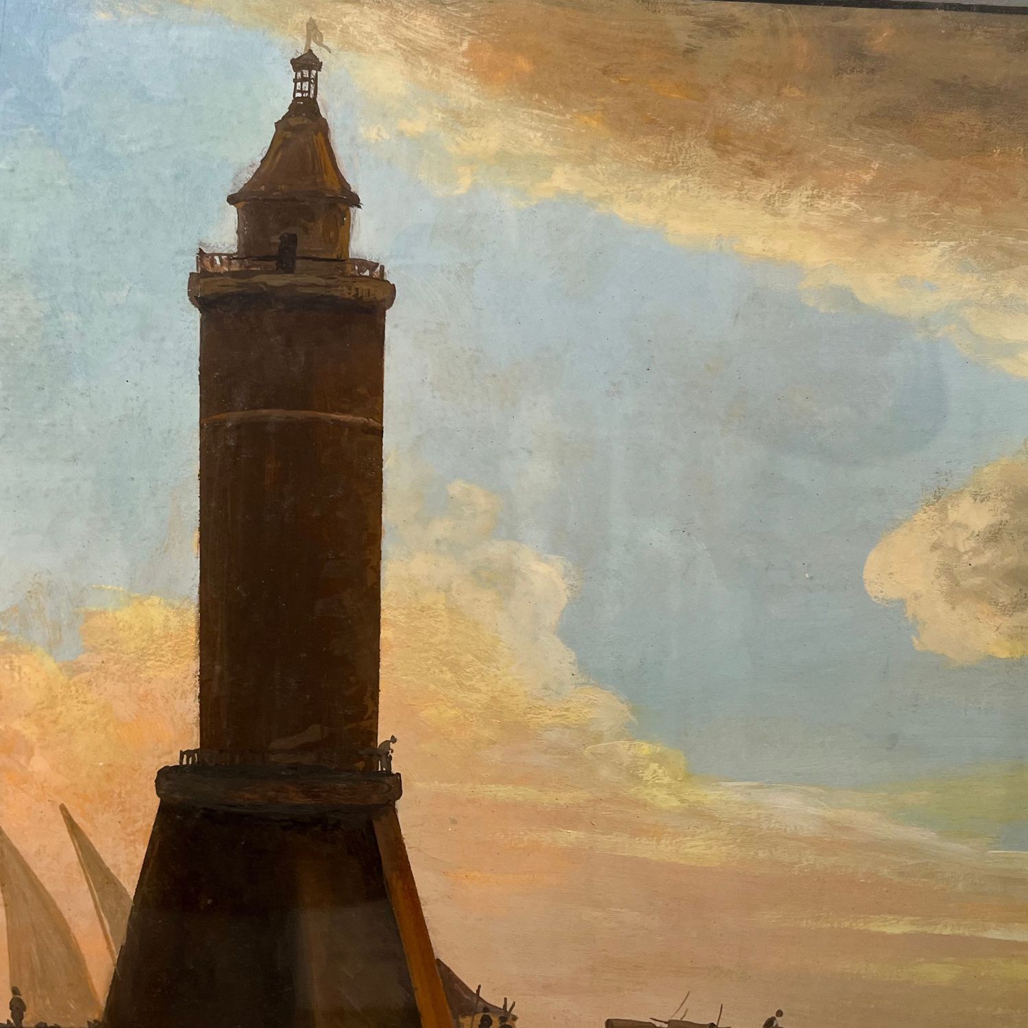 Dipinto guazzo (tempera su carta), periodo XX secolo raffigurante Il Faro a Genova.