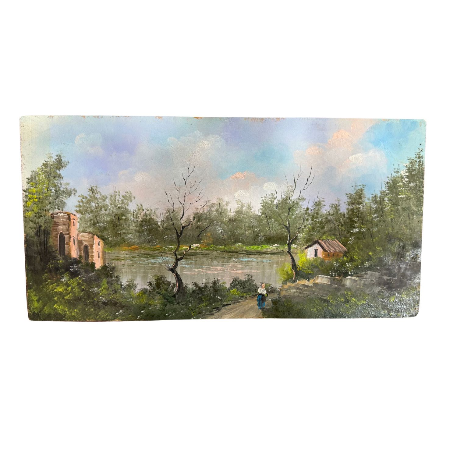 Dipinto olio su tavola, periodo XX secolo, raffigurante Paesaggio.