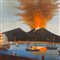 Dipinto guazzo (tempera su carta), periodo XX secolo scuola Italiana, raffigurante Veduta del Vesuvio in eruzione.