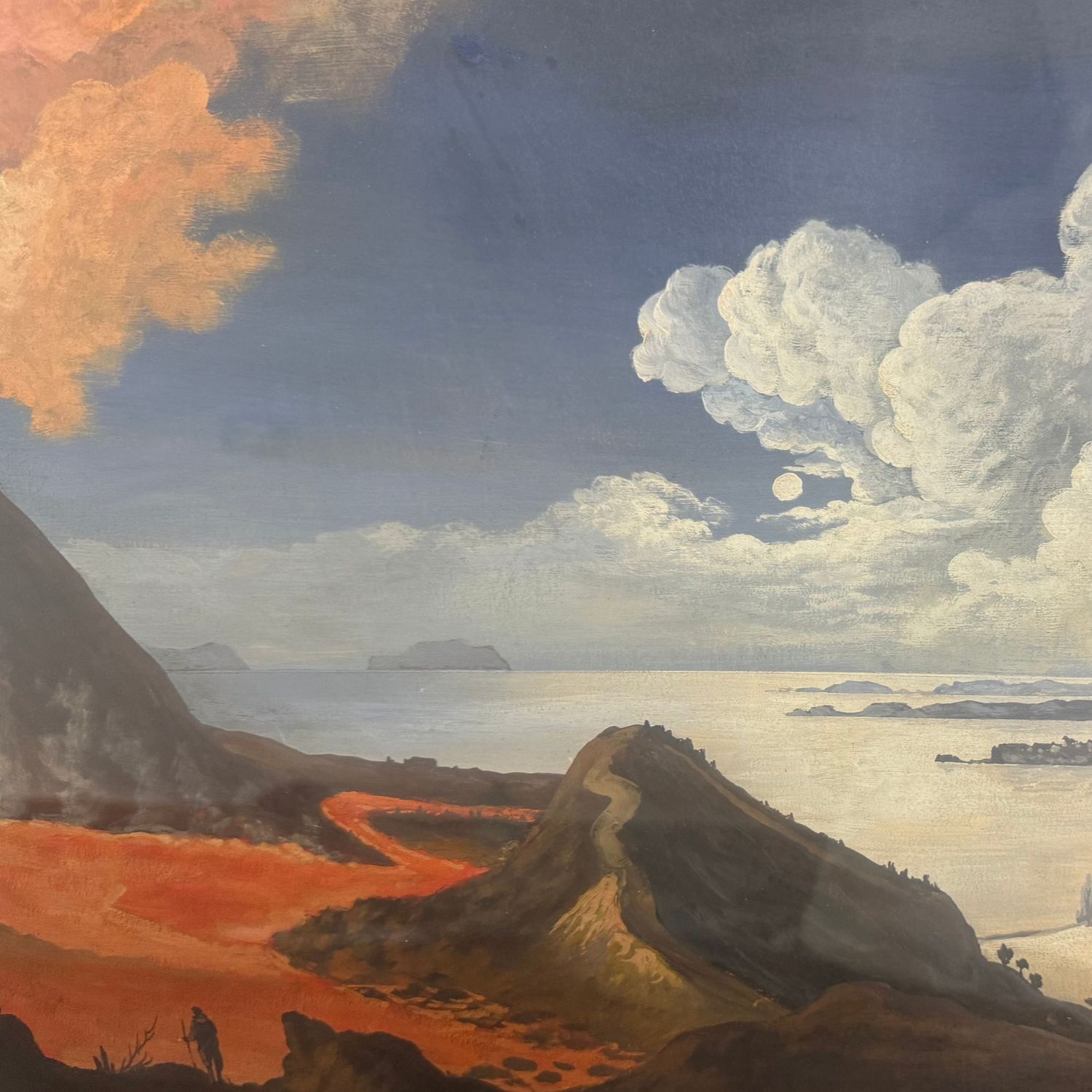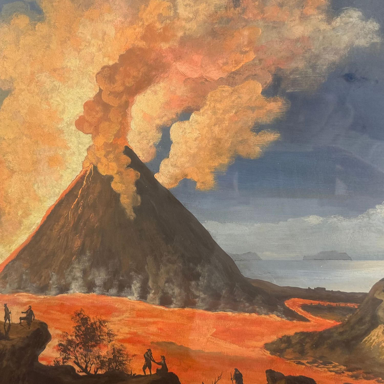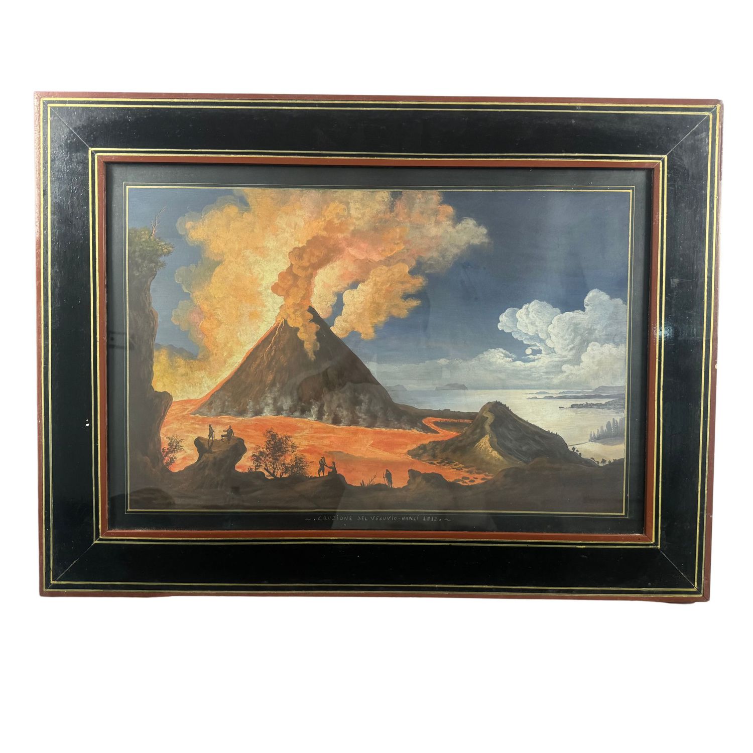 Dipinto guazzo (tempera su carta), periodo XX secolo scuola Italiana, raffigurante Eruzione riavvicinata del Vesuvio.