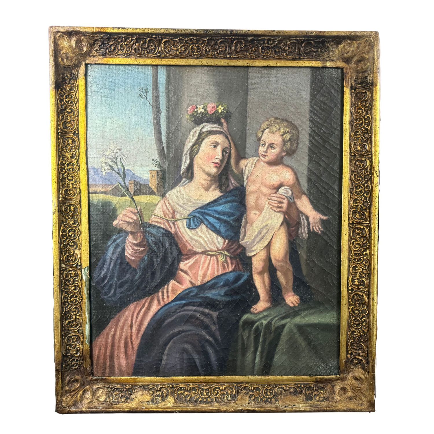 Dipinto olio su tela, periodo XIX/XX secolo scuola Francese raffigurante Vergine e Bambino.